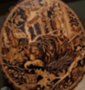 A collection of past artwork creating using various different mediums- woodburning, paint, markers etc.